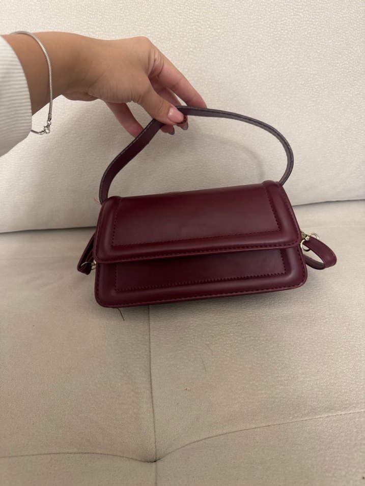 Bordo deri kadın omuz çantası, tokalı ve modern klasik stildedir. Desensiz yapısı ve Paris tarzı ile günlük kullanıma uygundur.