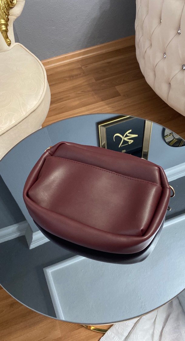Bordo deri kadın çantası, tokalı tasarımı ve minimalist, çağdaş stiliyle günlük kullanıma uygun klasik şıklık sunar.