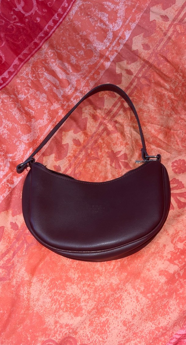 Bordo renkli deri kadın omuz çantası, tokalı detaya ve sade deseniz tasarıma sahiptir. Minimalist tarzı günlük ve sokak stiline uygundur. Trendy ve sade bir aksesuar olarak öne çıkar.