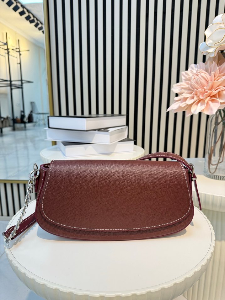 Bordo deri, kemerli tasarıma sahip kadın omuz çantası, modern klasik stil ve günlük kullanıma uygun, trend günlük görünüm sunar.