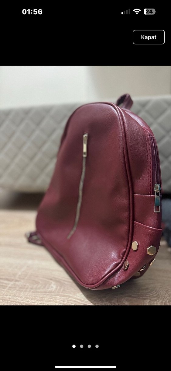 Bordo Deri Kadın Sırt Çantası Fermuarlı