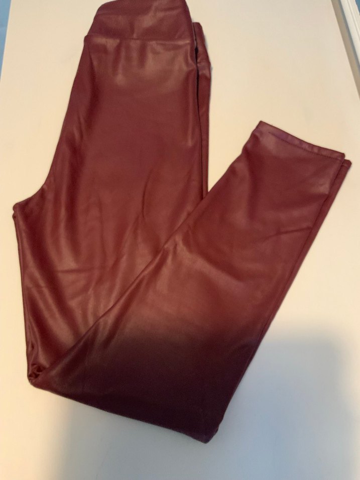 Bordo renkli, deri kumaştan, midi boy, vücuda oturan kadın tayt. Günlük kullanıma uygun, rahat ve şık bir sokak stili sunar.