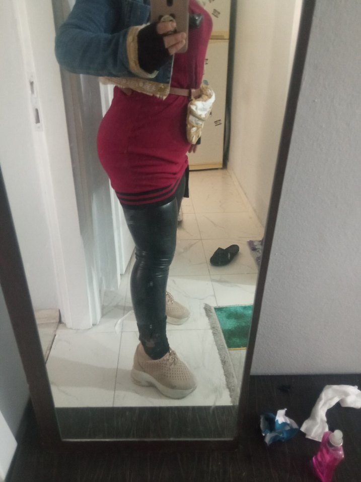 Bordo deri, kemerli, midi boy hamile taytı. Günlük kullanıma uygun, sokak stiline uygun, fitted kesim ve yüksek yaka detaylı.