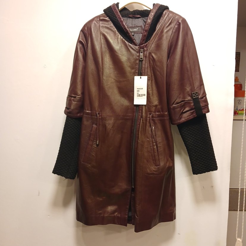 Kemerli, uzun kollu, bordo Gerçek deri ceket. Normal boyda, notched lapel yakalı ve zipli, sokak stili için uygun.