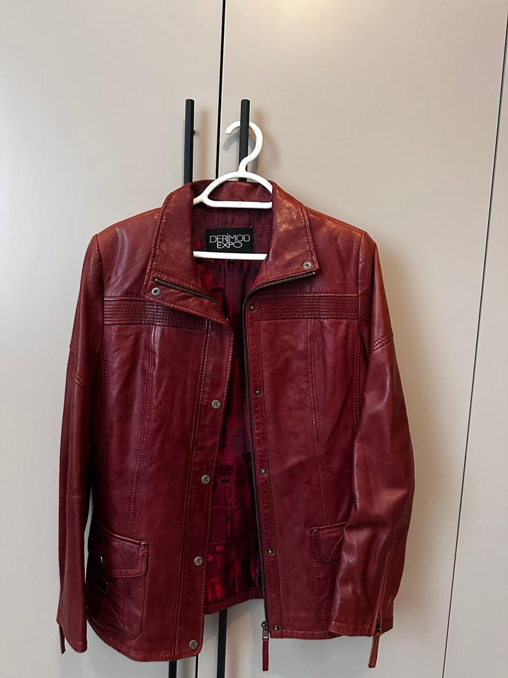 Bordo renkte, kemerli ve ince kesimli deri ceket. Notch yakalı, uzun kollu ve günlük kullanıma uygun şık sokak stili görünümü sağlar.