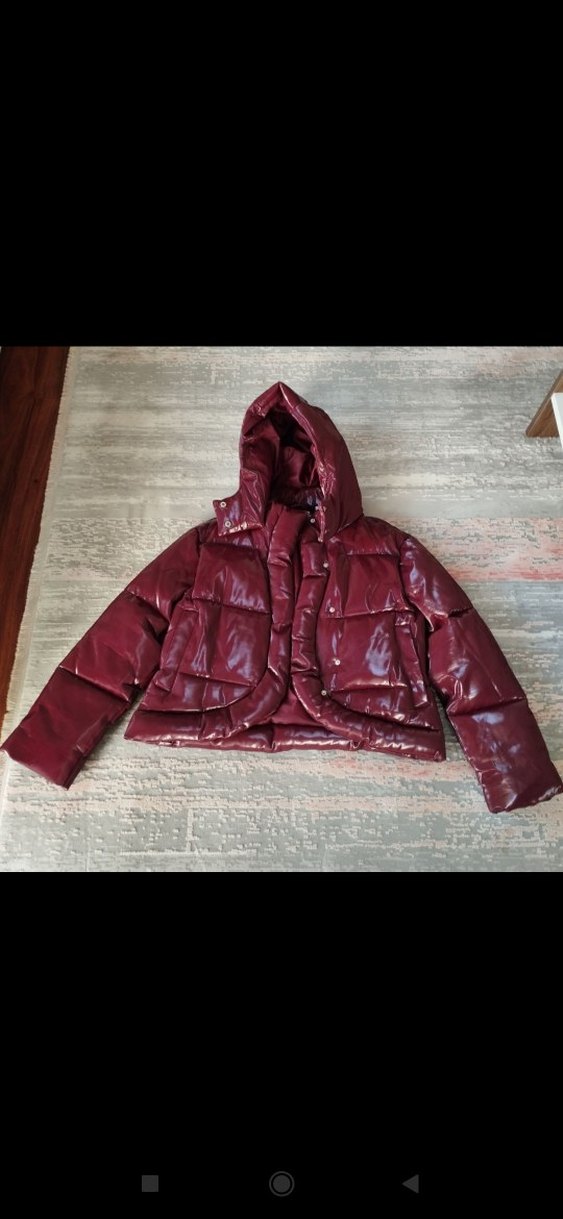 Bordo suni deri,, kapüşonlu ve uzun kollu kısa kesim kadın kışlık mont. Sokak stili ve günlük kullanıma uygun, sıkı kesim tasarım.