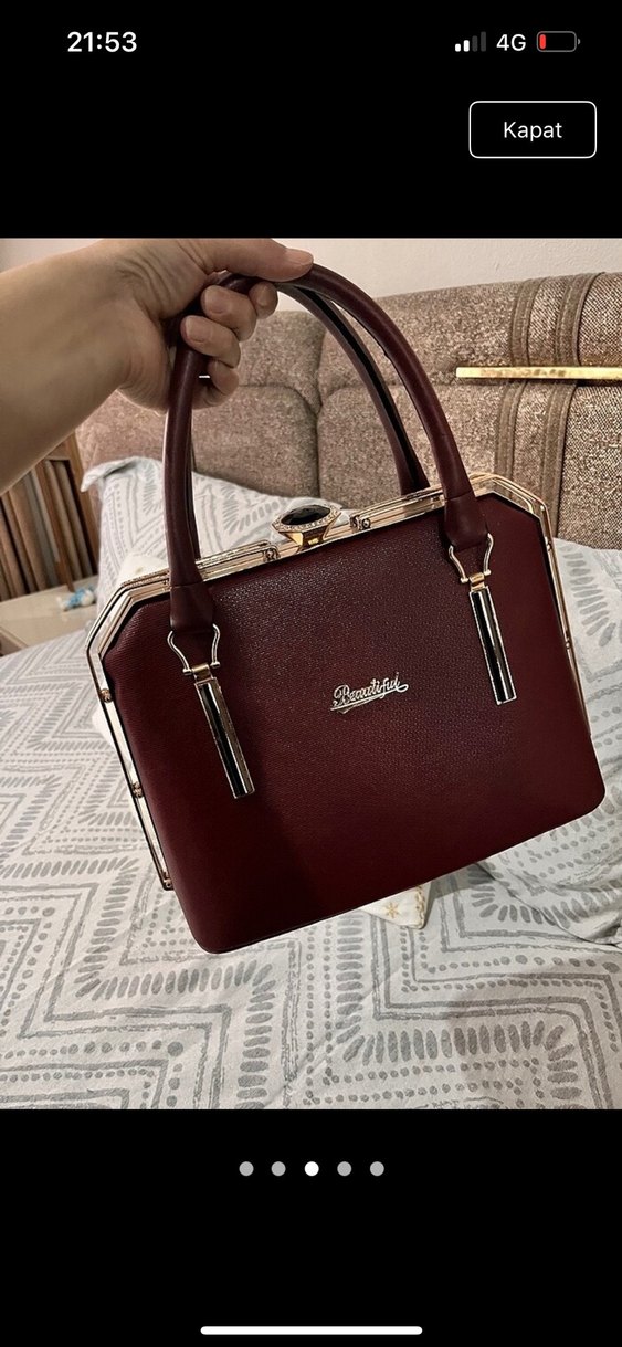 Bordo Deri Klasik Kadın El Çantası