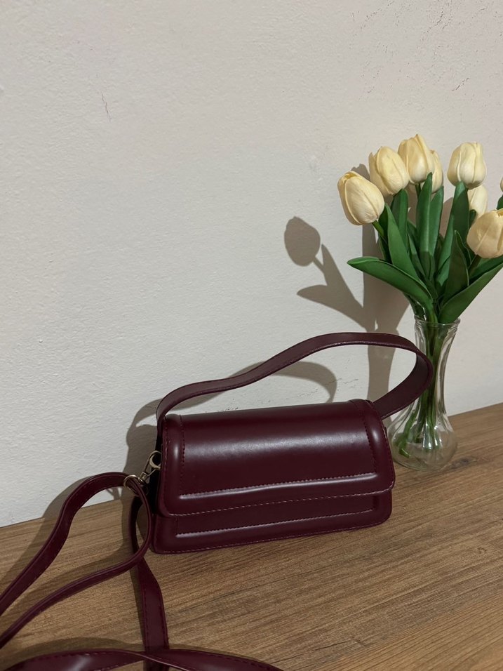 Bordo deri çanta, minimalist ve şık tasarımlı. Günlük kullanıma uygun, klasik zarafeti yansıtan rahat şıklık sunar.