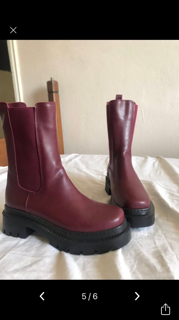 Bordo deri ve platform topuklu kadın botları, günlük kullanıma uygun trendy gotik tarz ve zahmetsiz şıklık sunar.