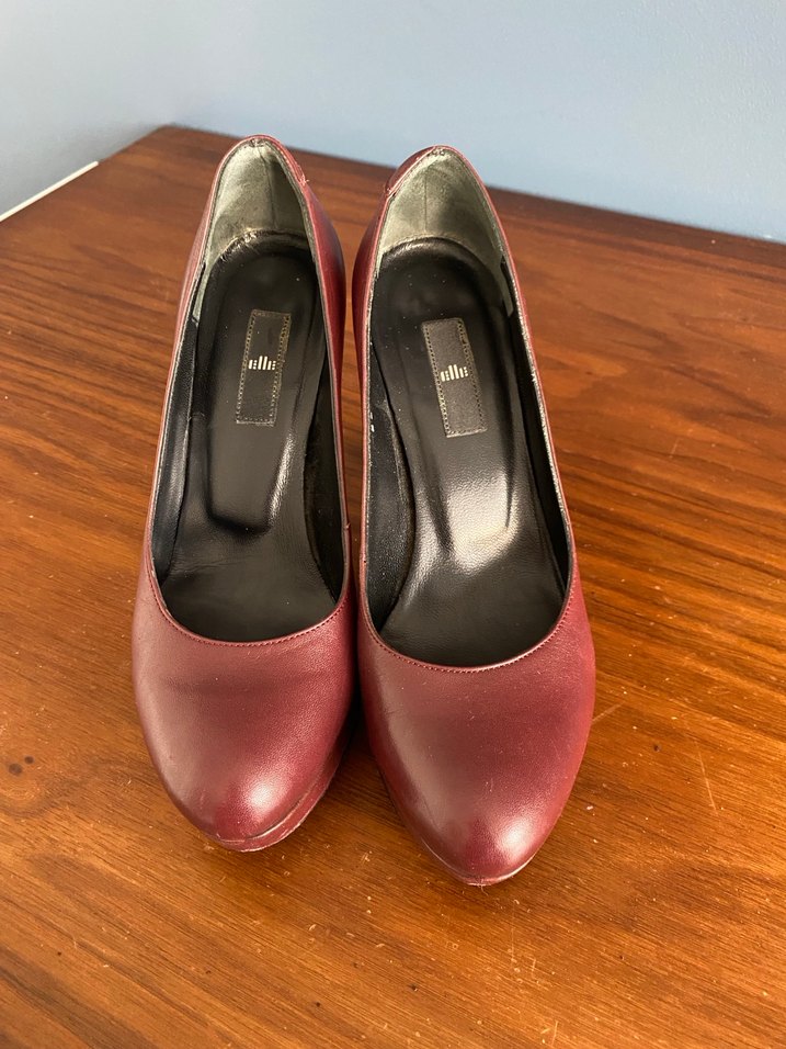 Bordo Deri Platform Topuklu Kadın Stiletto