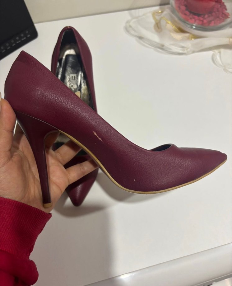Bordo Deri Stiletto Kadın Topuklu Ayakkabı