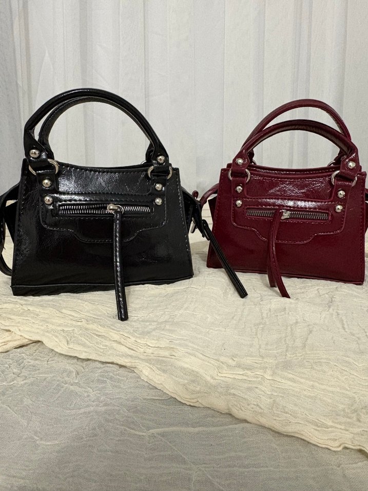 Bordo deri kadın çanta, parlak detayları ve tokalı süslemeleriyle klasik şıklığı modern tarzla birleştirir.