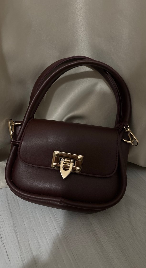 Bordo deri ve tokalı kapama detayına sahip, Paris esintili modern klasik tarzda günlük kullanıma uygun kadın çantası.