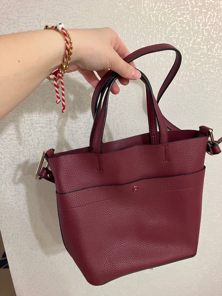 Bordo Deri Tokalı Kadın Çanta