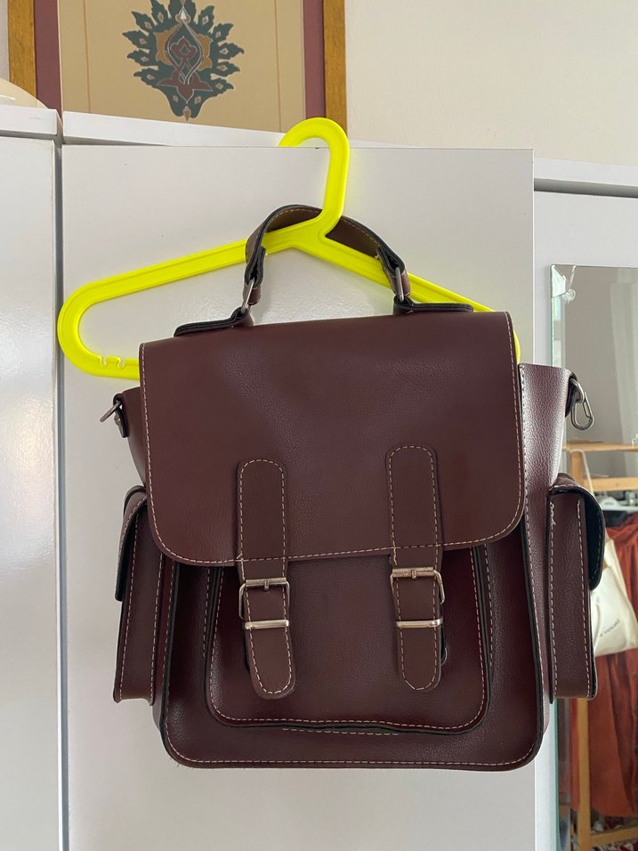 vintage deri çanta rengi çok hoş bordo kahve arası bir tonda birçok gözü mevcut çok kullanışlı bir çantadır dilerseniz uzun sapı ile de kullanılabilir