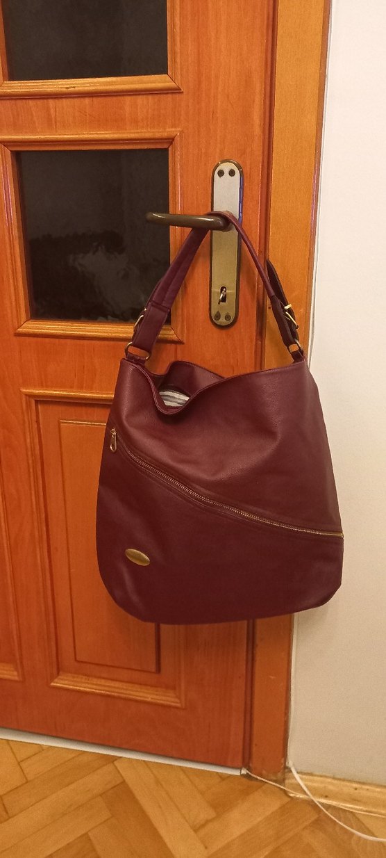 Bordo renkli deri çanta, parlak görünüme ve tokalı askıya sahip, minimalist ve çağdaş tarza uygun günlük kullanım için. h&m 38 beden siyah dantel iç astarlı çok şık elbise ürün sorunsuzdur tertemiz iki kol arası 43cm boy96cm