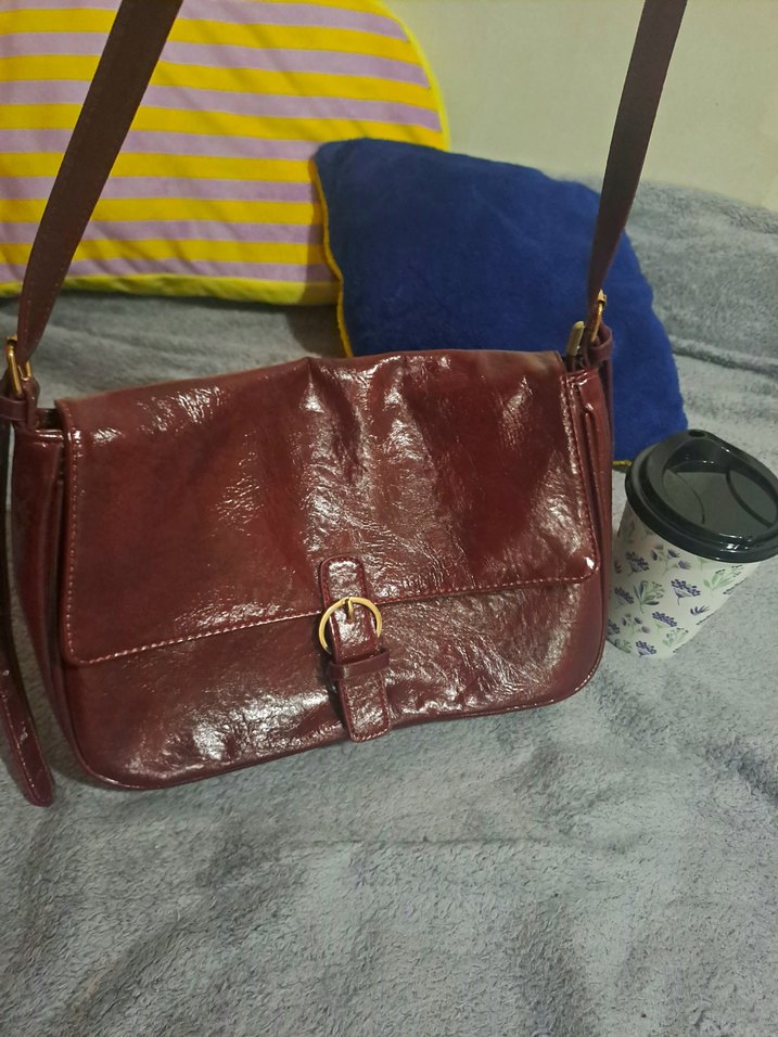 Bordo Deri Tokalı Kadın Çanta vintage
