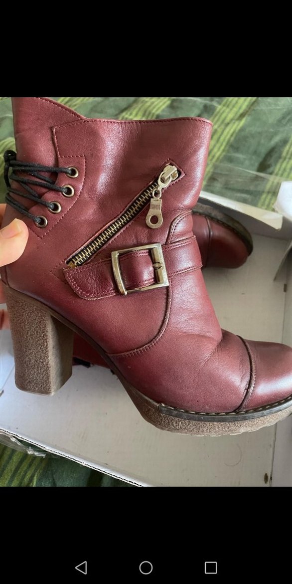 Bordo deri kadın bot, kalın topuk, tokalı ve fermuarlı detaylarla vintage ve bohem tarz sunar. Gerçek deri.
