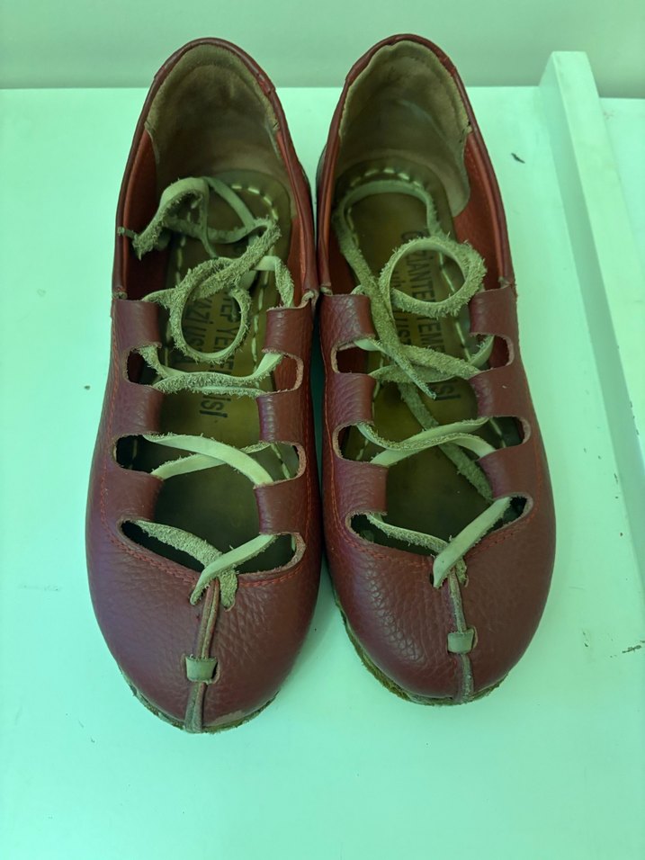 Antep el işçiliği ile yapılmış Bordo deri kız çocuk babet, tasarımıyla rahat sağlıklı ve dayanıklı bir stile sahiptir. Önünde hafif bir sürtünme var görselde mevcuttur Ayakkabı iç ölçüsü 22 dış taban ölçüsü 24 cm dir 36-37 no ayaklara uygundur