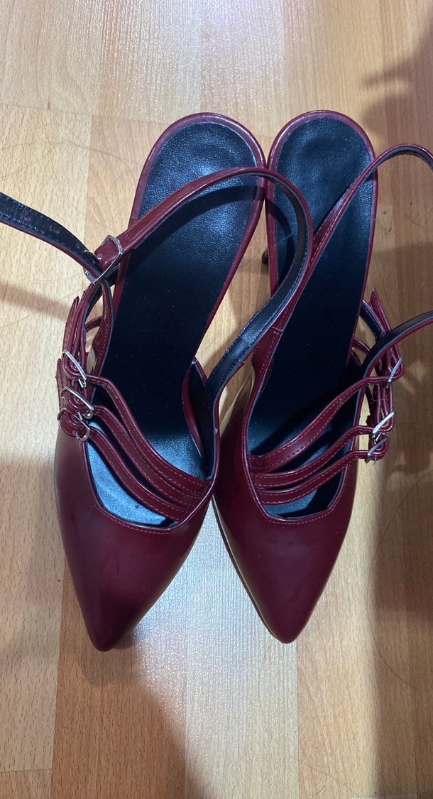 Bordo Deri Tokalı Stiletto Topuklu Kadın Ayakkabı