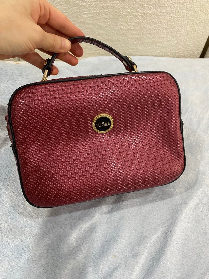 Bordo deri, yılan desenli, parlak dokulu kadın çanta. Fermuarlı ve modern klasik tarzda, Paris esintisi taşıyor.