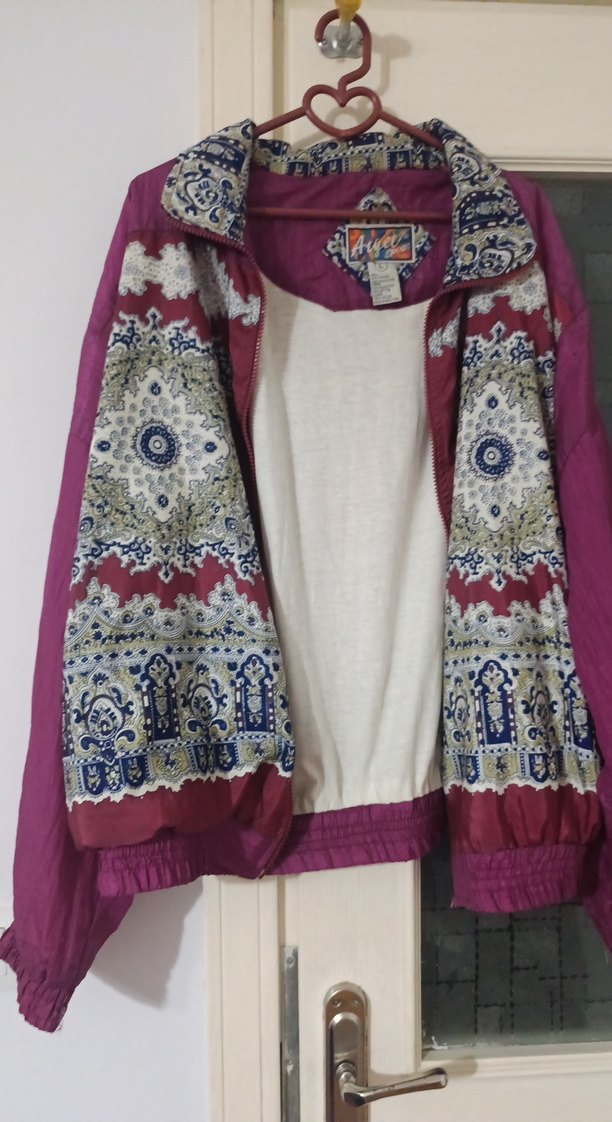 Bordo renkli, uzun kollu, desenli ve salaş kesim bohem kadın ceketi. Midi boyda, yuvarlak yakalı ve parlak dokulu kumaştan üretilmiştir.