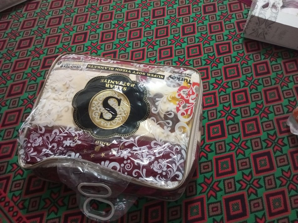 Bordo renkli çocuk battaniyesi, baskılı desene sahip ve plastik ambalajda sunulmaktadır. Yumuşak dokuludur. ️