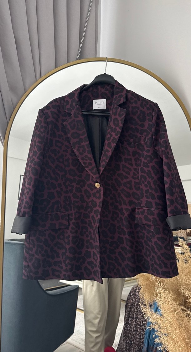 Bordo renkli, notched lapel yakalı ve düğmeli midi blazer. Uzun kollu, baskılı desenli ve normal kesim, ofis kullanımı için uygundur.