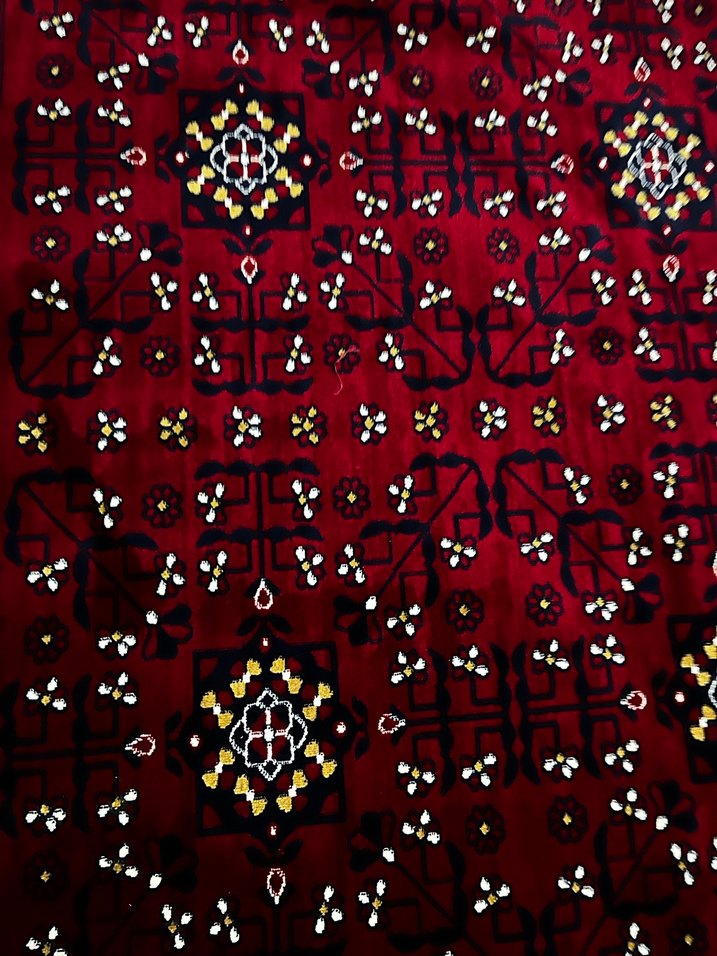 Bordo renkli, geleneksel desenlere sahip, koyu tonlu ve küçük çiçek motifleri içeren halı. Klasik bir dokunuş sağlar. 4 metre Afgan halısı