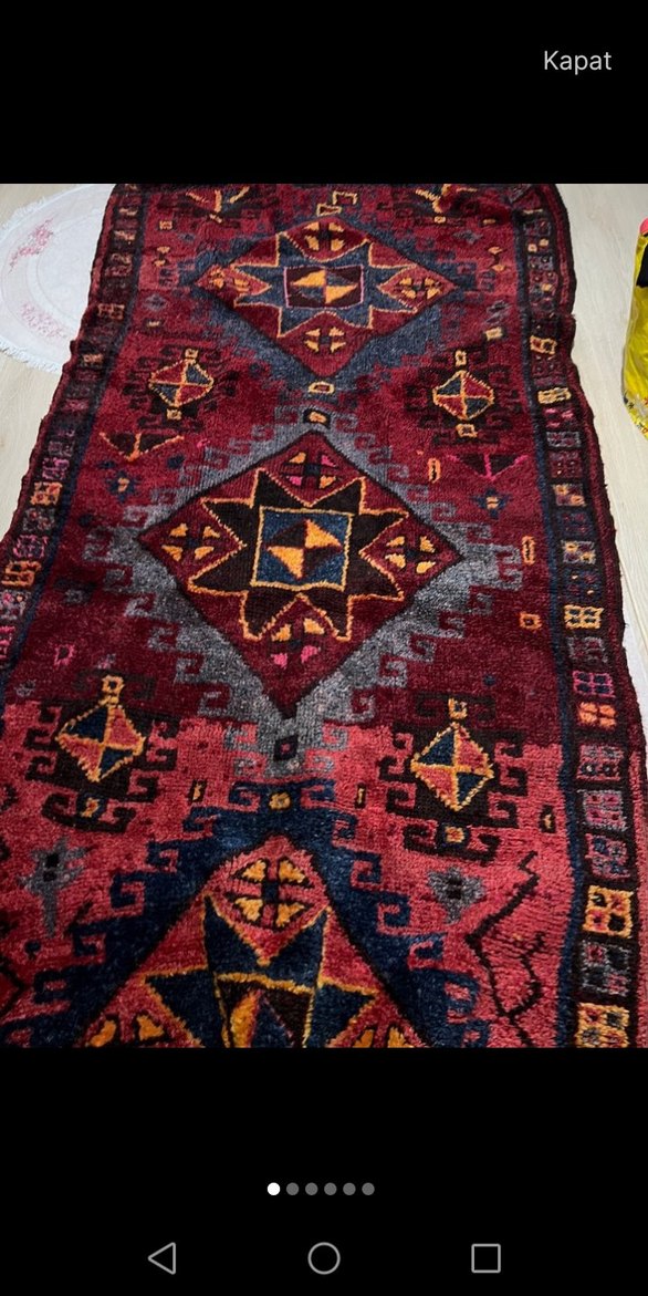 Bu geleneksel halı, bordo renginde koyu tonlara sahip ve mavi, sarı ile kırmızı desenlerle süslenmiştir. Her mekâna klasik bir hava katar.