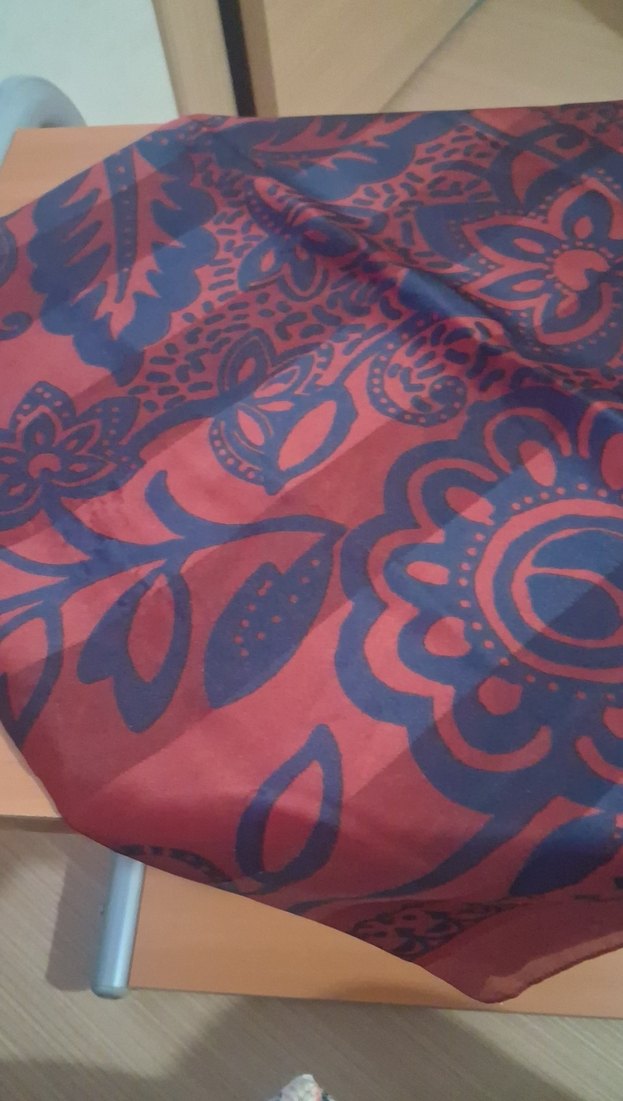 Kadın fular, bordo çiçek desenleriyle bohem tarzda, dökümlü tasarımı ve yumuşak ipektandır. yurt dışından almıştım. 78× 78 cm dir. kendinden çizgilerde vardır. son fotoda görülüyor.