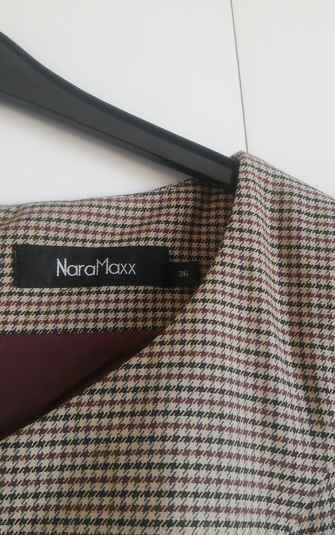 Bordo renkli, desenli kadın elbise, kesik yaka ve kısa kolludur. Kemer tokası detaylı, normal boy ve regular kesimdir. Ofis için uygundur. Kumaş yünlüdür. Marka: NaraMaxx.