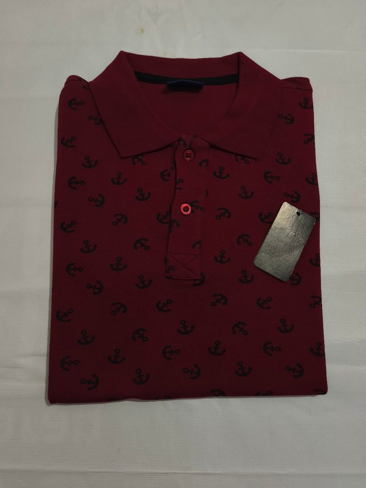 Bordo renkli, kısa kollu polo tişört, yaka ve düğme detaylarına sahiptir. Üzerinde çapa desenleri bulunur, sentetik kumaştan üretilmiştir ve rahat kesimlidir.
