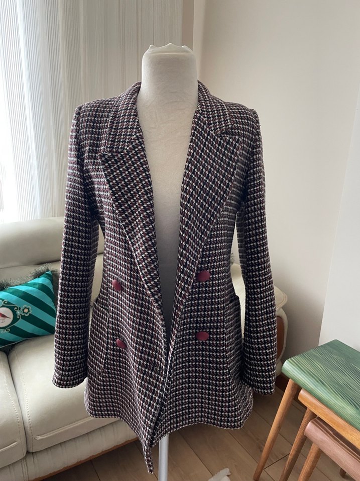 Bordo Desenli Midi Blazer Ceket