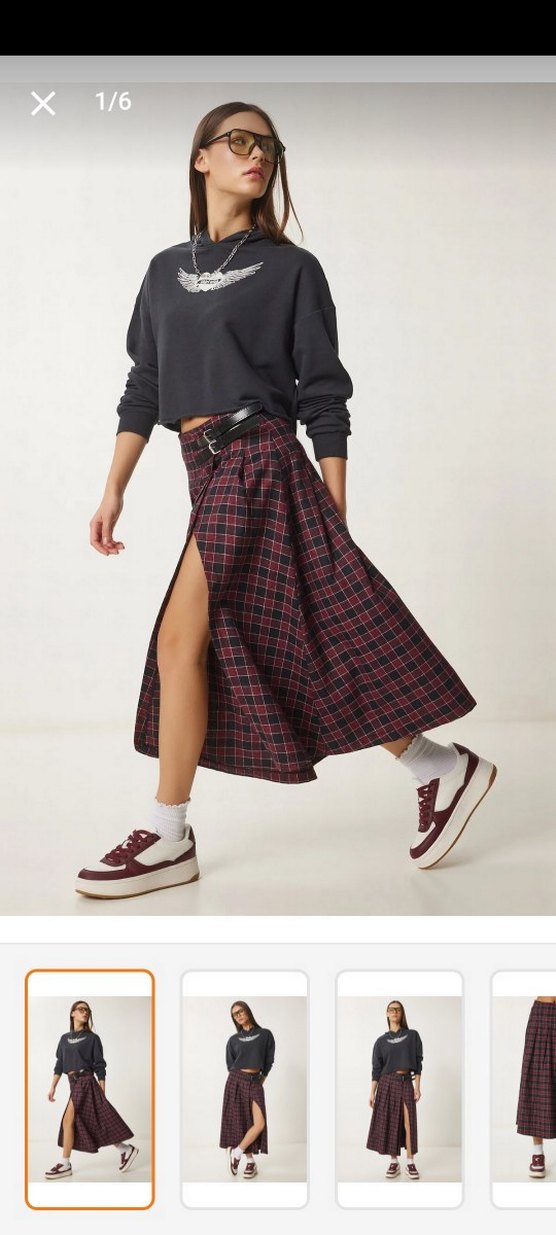 Bordo renkte, ekose desenli, kemerli ve yırtmaçlı midi etek. 38 beden, belime dar geldi, etiketini koparmistim, giyilmedi. Etiketi olmadığı için satış fiyatının fazlasıyla altına koyuyorum nasılsa giyemeyecegim