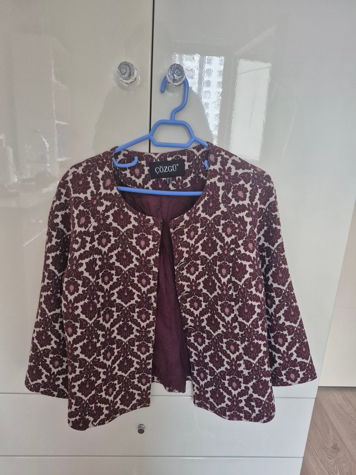 bordo renkli desenli takım, tesettüre uygundur. 40 beden. sadece iki kere giyildi herhangi bir defosu yoktur