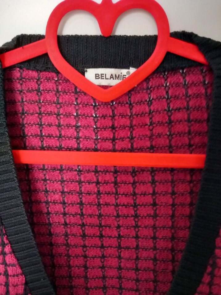 Bordo renkli, desenli triko hamile kazağı, V yakalı ve askılı kollu, midi boyda, sentetik kumaştan üretilmiştir. Günlük kullanım için uygundur. Marka: BELAMi.