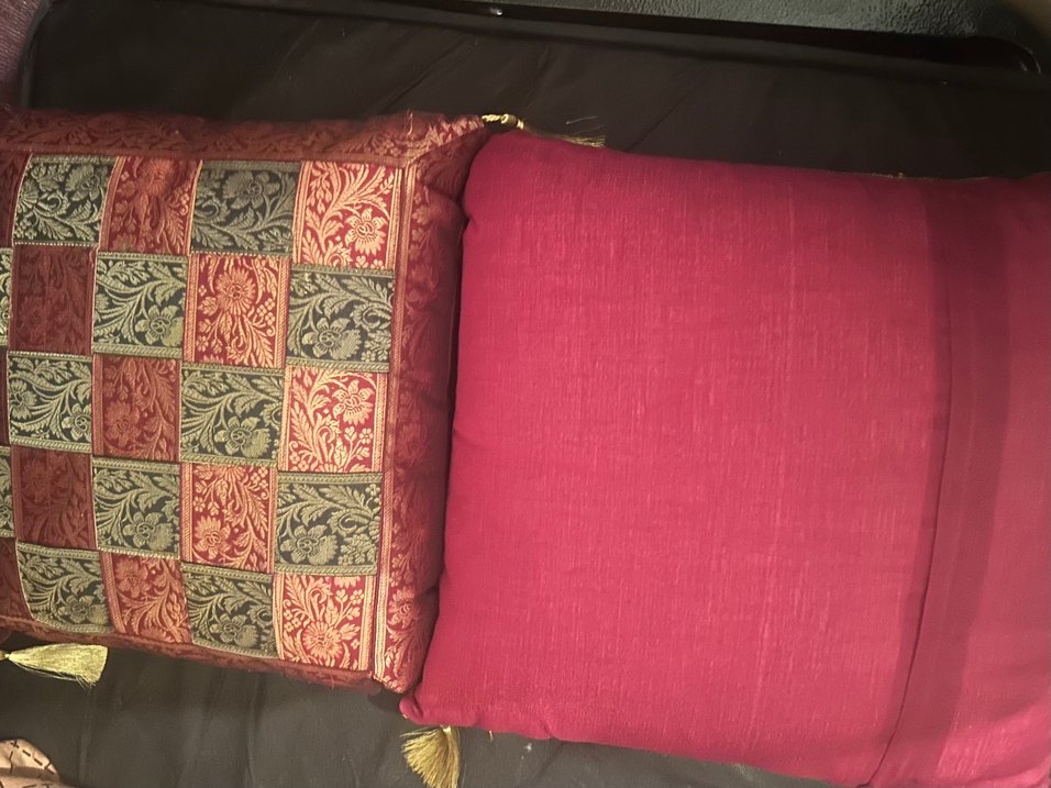 Bu set, biri bordo desenli, diğeri düz bordo renkte iki adet geleneksel tarzda yastık içerir. ️4 adet