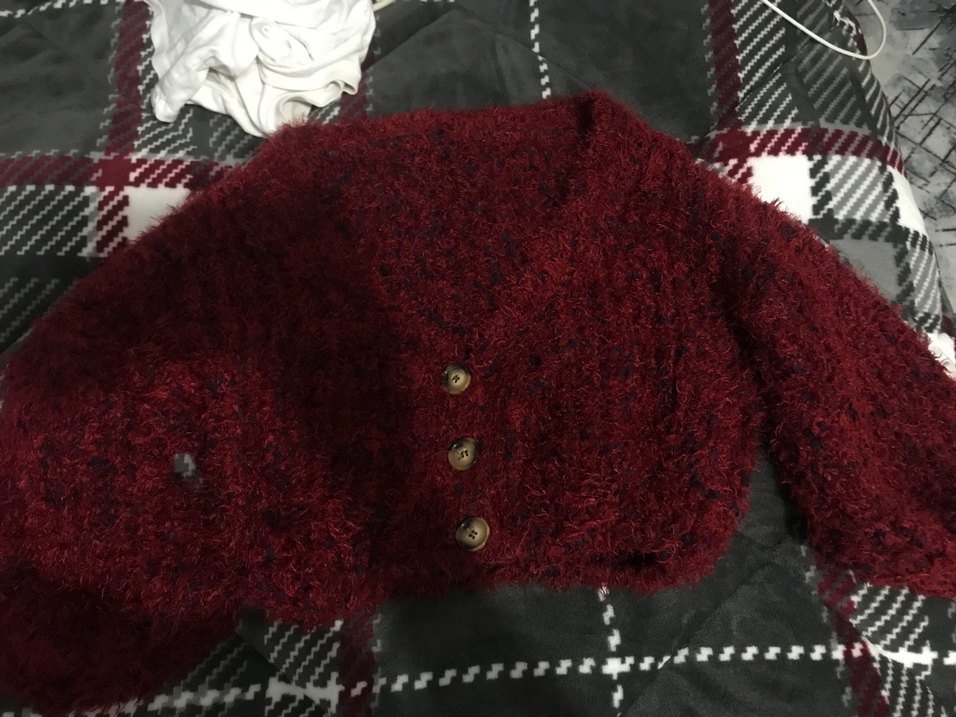 Bordo renkli, desenli ve normal midi uzunluktaarahat ve modaya uygun yumoş hırka