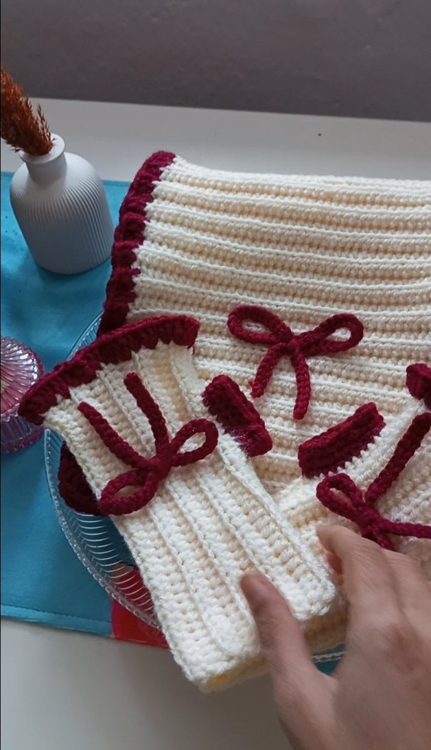 Krem rengi üzerine bordo kenar ve fiyonk detaylı örgü kadın eldiveni ve atkı rahat ve bohem tarz sunar.Tığ işi satış amaçlı örüldü Atkı 500₺eldiven 300₺ ayrı almak isterseniz hangisini istediğinizi yazın tek atkı veya tek eldiven ona göre ilan açayım