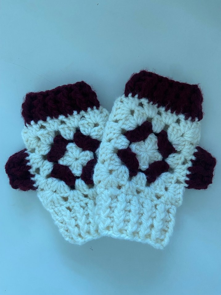 Bordo detaylı, örgü kadın eldivenleri rahat ve bohem tarzda, soğuk havalar için ideal. İstenilen renk yapılır