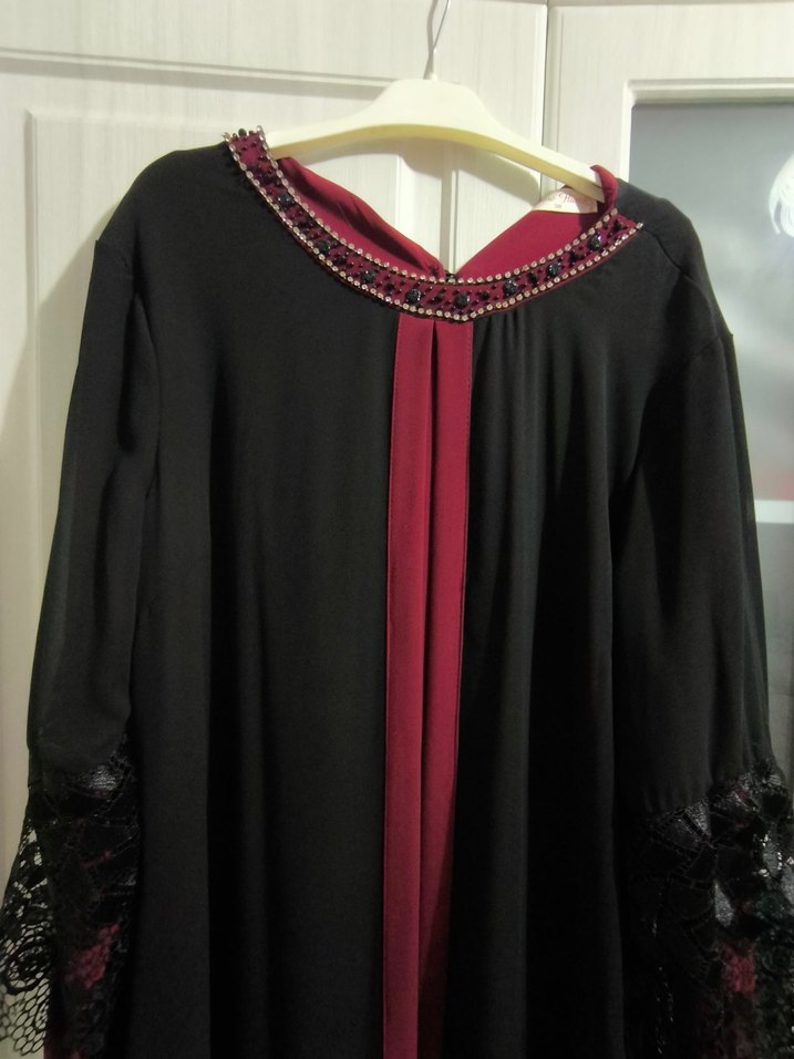 Bol kesim, bordo siyahlı kolları dantelli yakası boncuk detaylı abiye
