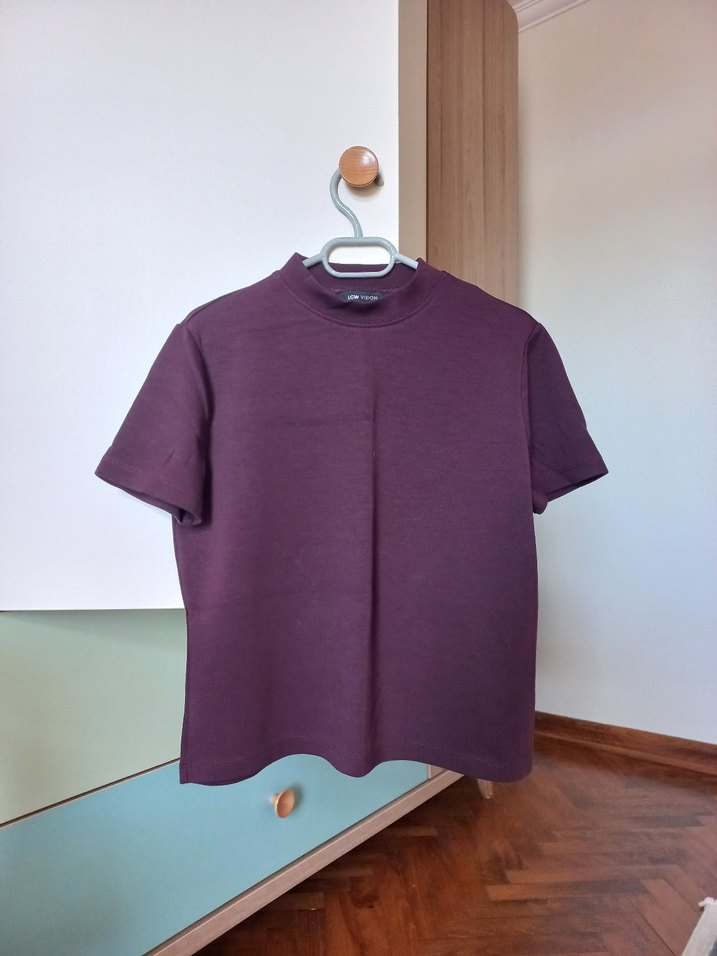 Mor renkte, kısa kollu ve yuvarlak yaka kadın tişörtü. Rahat kesimi ve düz deseniyle günlük kullanıma uygundur. Bordo Dik Yaka T-Shirt. Çok nadir kullanıldı ✨️