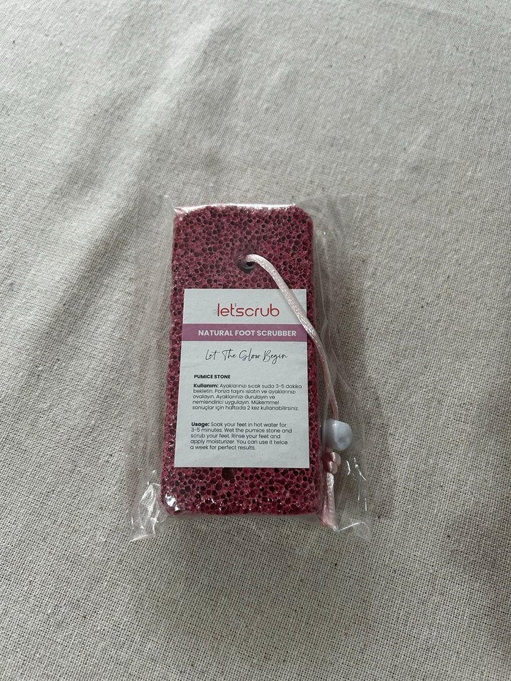 Bordo renkli doğal ayak ponza taşı, etkili eksfoliasyon için ponza taşı dokusuna sahiptir. Asma halkası bulunmaktadır. Marka: let'scrub.