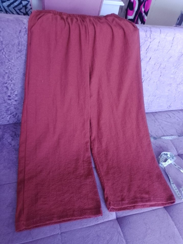 kiremit rengi havlu kumaştan, dökümlü ve bol kesim rahat kadın pantolonu.