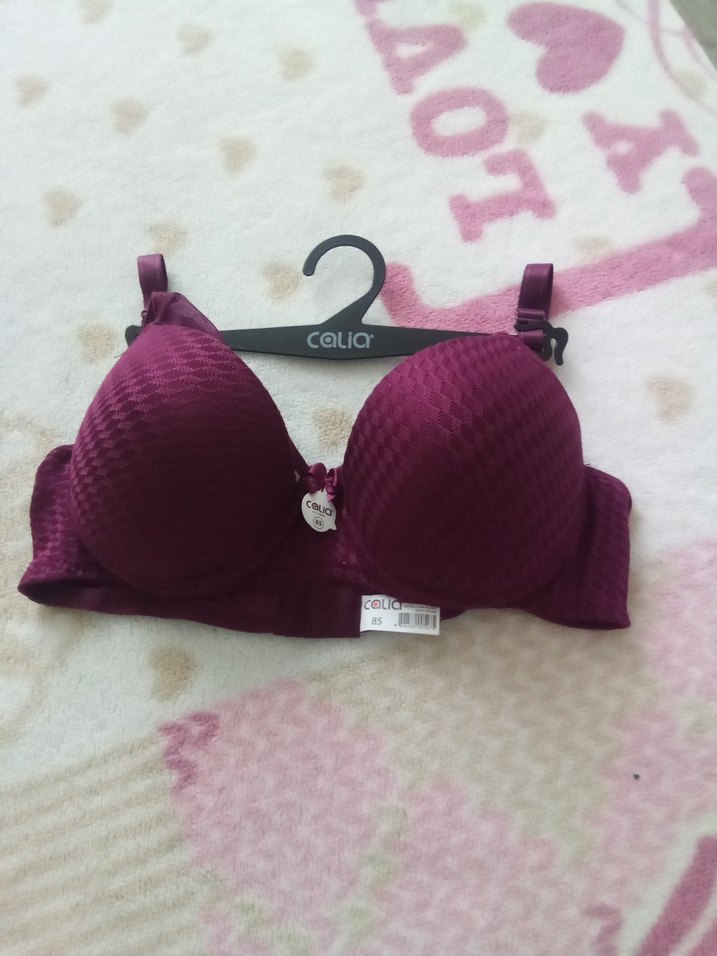 Bordo renkte, düz desenli ve modern tarzda sütyen. Ayarlanabilir askıları ve yumuşak dokusuyla rahat destek sağlar. 85 beden