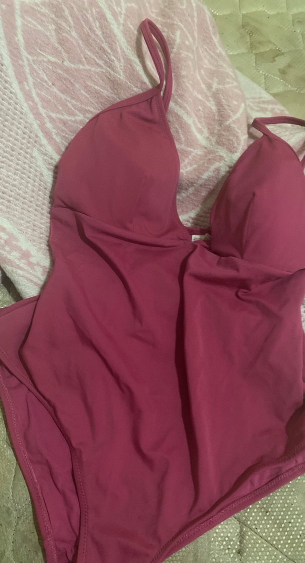 Bordo renkte, ince askılı ve drapeli tasarıma sahip, normal boyda kadın mayo. Plaj için bohem tarzda şık bir seçim.