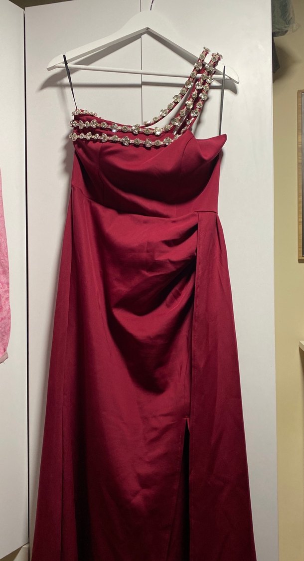 Yurtdışından alındı. Bordo renk, işlemeli askılı straplez yaka ve drapeli detaylara sahip, uzun ve vücuda oturan şık abiye elbisedir. Parlak kumaşıyla düğünlere uygundur. Bir kez giyildi, arka askısında bir kaç taş düşmüş, o yüzden uyguna koyuyırum, isteyenlere detaylı görsel atabilirim