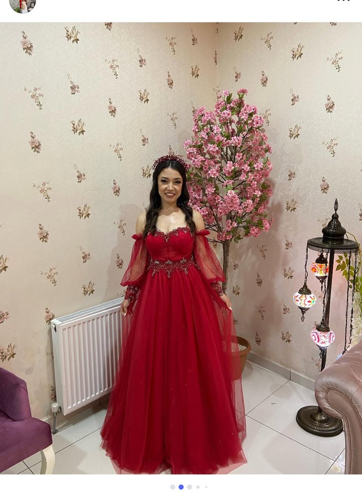Bordo Drapeli İşlemeli Uzun Abiye Elbise