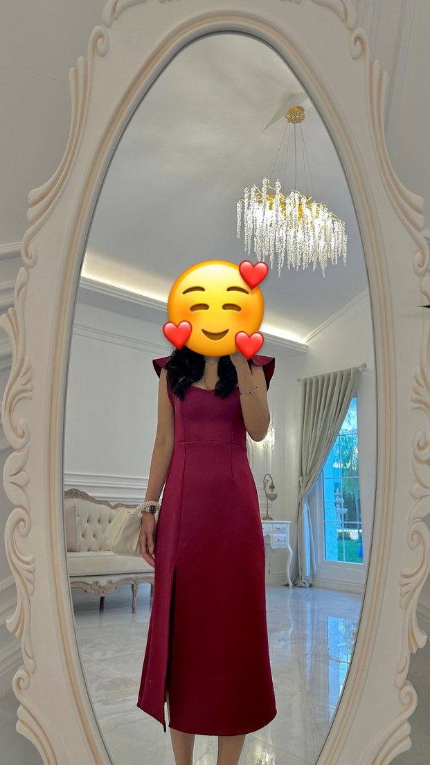 Bordo midi elbise, bacak yırtmaçlı, S-M beden. Zarif ve şık. Sadece bir kez giyildi. İade yok
